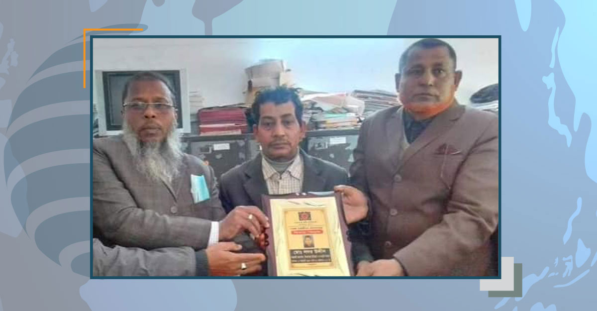 মৃত্যুর আগে নিজ কর্মস্থল থেকে বিদায়ী সংবর্ধনা নিচ্ছেন সদরুদ্দিন