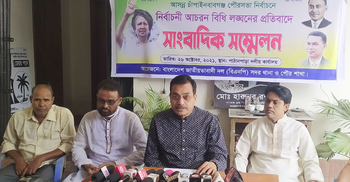 চাঁপাইনবাবগঞ্জ পৌর ও সদর উপজেলা বিএনপির আয়োজনে অনুষ্ঠিত সংবাদ সম্মেলনে অভিযোগ করে তিনি বলেন, গত ১৮ অক্টোবর প্রতীক বরাদ্দের পর থেকে আওয়ামী লীগের নৌকা প্রতীকের প্রার্থী বিভিন্ন নির্বাচনী আচরণবিধি লংঘন করে আসছে।