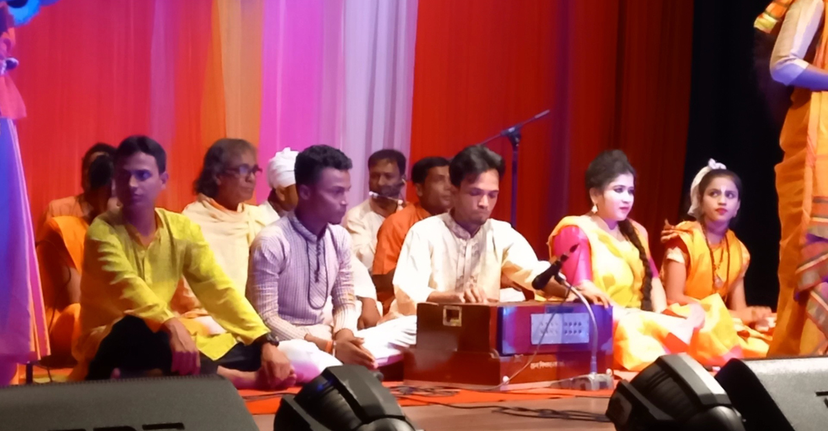 একদিকে ঢুলি বাদ্যের তালে তালে নাচ। অন্যদিকে একতারাওয়ালার নাচ। থেমে নেই বাঁশিওয়ালাও। সুরে সুরে মাতিয়ে তুলছেন পুরো আসর। আরেকদিকে লালন সাঁইয়ের ‘চাঁদের গায়ে চাঁদ লেগেছে, আমরা ভেবে করব কী’ শিরোনামের গান গাইছেন শিল্পী হাসেম চিশতী। দেহতত্ত্বের এ গান শুনে চাতক পানে বসে থাকা নিস্তব্ধ গ্যালারি ভর্তি দর্শক-শ্রোতারা মুগ্ধ হয়ে গেলেন।