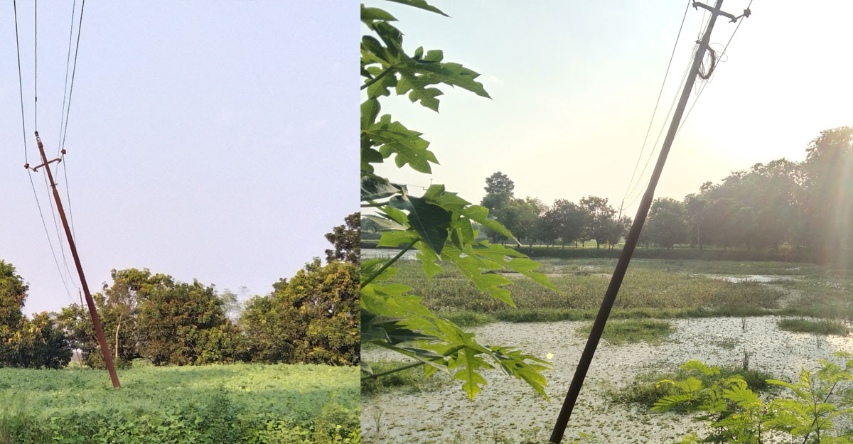হেলে পড়েছে বৈদ্যুতিক খুঁটি, আতঙ্কে কৃষকরা
