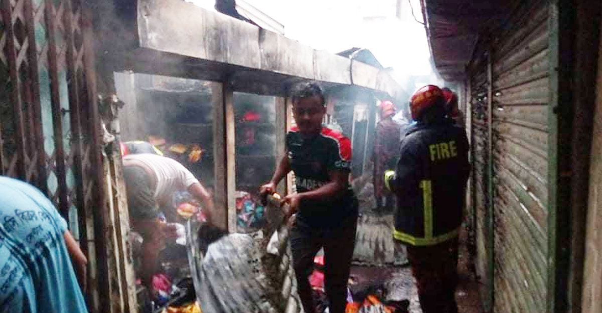 নরসিংদীর শেকেরচর বাজারে আগুন