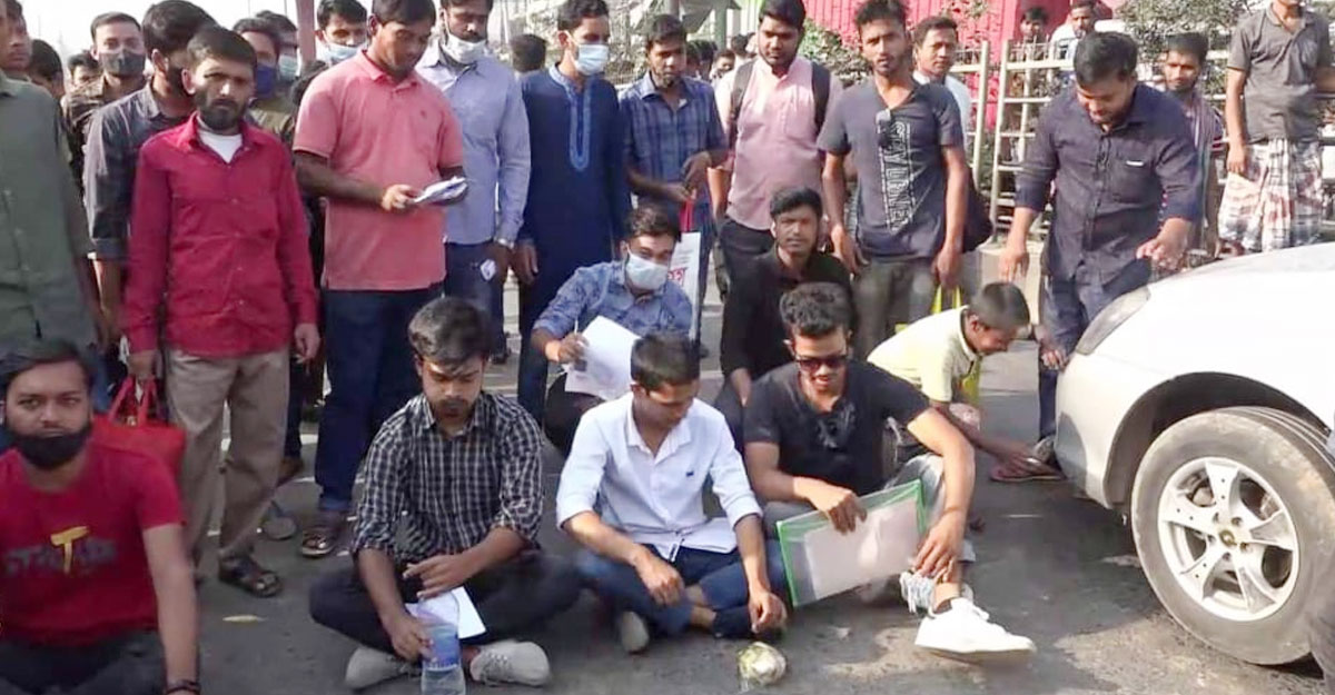 শুক্রবার (০৫ নভেম্বর) সকালে তারা ঢাকা-আরিচা মহাসড়কের সাভার বাসস্ট্যান্ডে প্রবেশপত্র হাতে নিয়ে বিক্ষোভ করেন। তাদের এ কর্মসূচিতে যোগ দেয় রাষ্ট্রয়ত্ত সাত ব্যাংকে সিনিয়র অফিসার পদে নিয়োগ পরীক্ষায় অংশ গ্রহণকারীরাসহ সাধারণ যাত্রীরা।