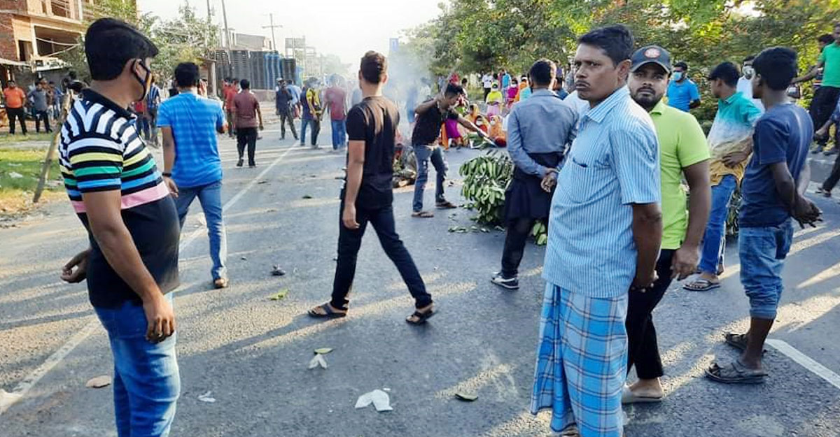 বেতনের দাবিতে মহাসড়ক অবরোধ করে শ্রমিকদের বিক্ষোভ