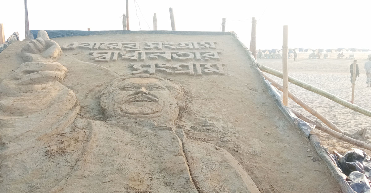 কক্সবাজারে সৈকতে বঙ্গবন্ধুর সর্ববৃহৎ বালুর ভাস্কর্য
