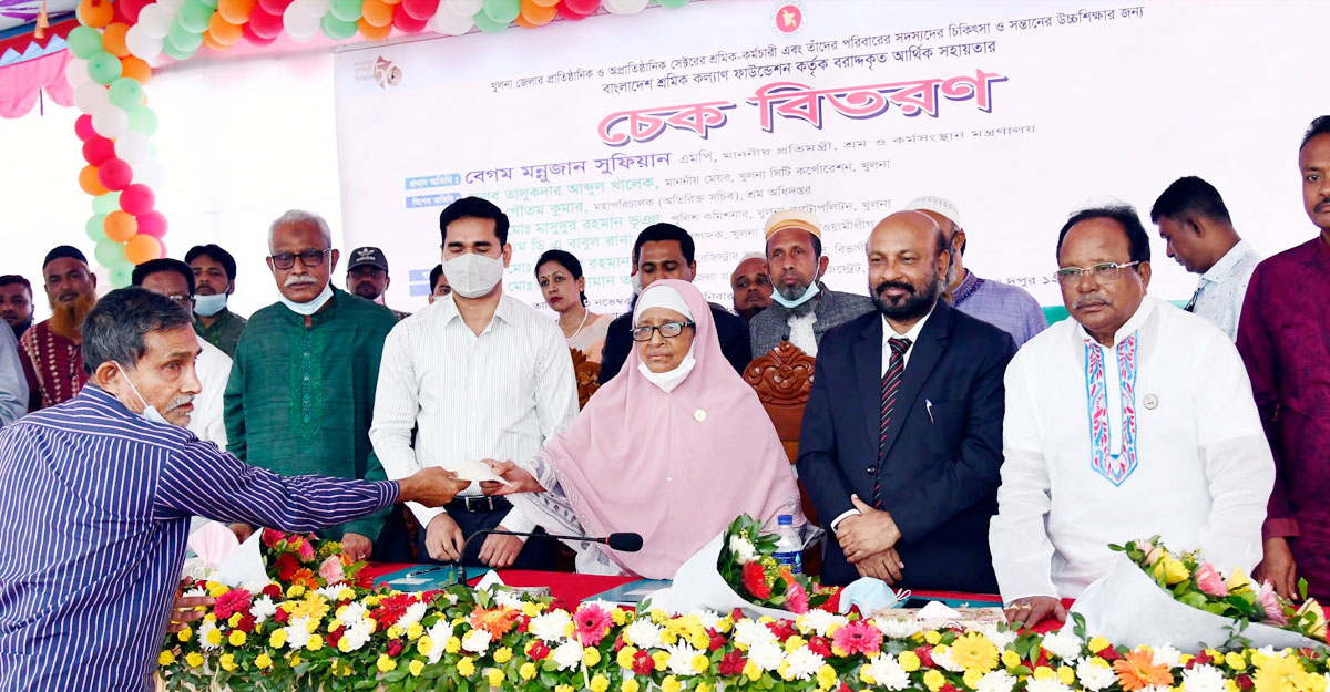 খুলনার প্রাতিষ্ঠানিক-অপ্রাতিষ্ঠানিক খাতের প্রায় সাড়ে তিনশ শ্রমিক এবং তাদের পরিবারের সদস্যদের মাঝে এক কোটি ১৯ লাখ ৫০ হাজার টাকার চেক বিতরণ করা হয়েছে। বৃহস্পতিবার (১৩ নভেম্বর) দুপুরে খুলনা মহানগরীর রুপসা এলাকায় বিভাগীয় শ্রম দফতর চত্বরে শ্রম ও কর্মসংস্থান প্রতিমন্ত্রী বেগম মন্নুজান সুফিয়ান এক অনুষ্ঠানে এই সহায়তার চেক প্রদান করেন।