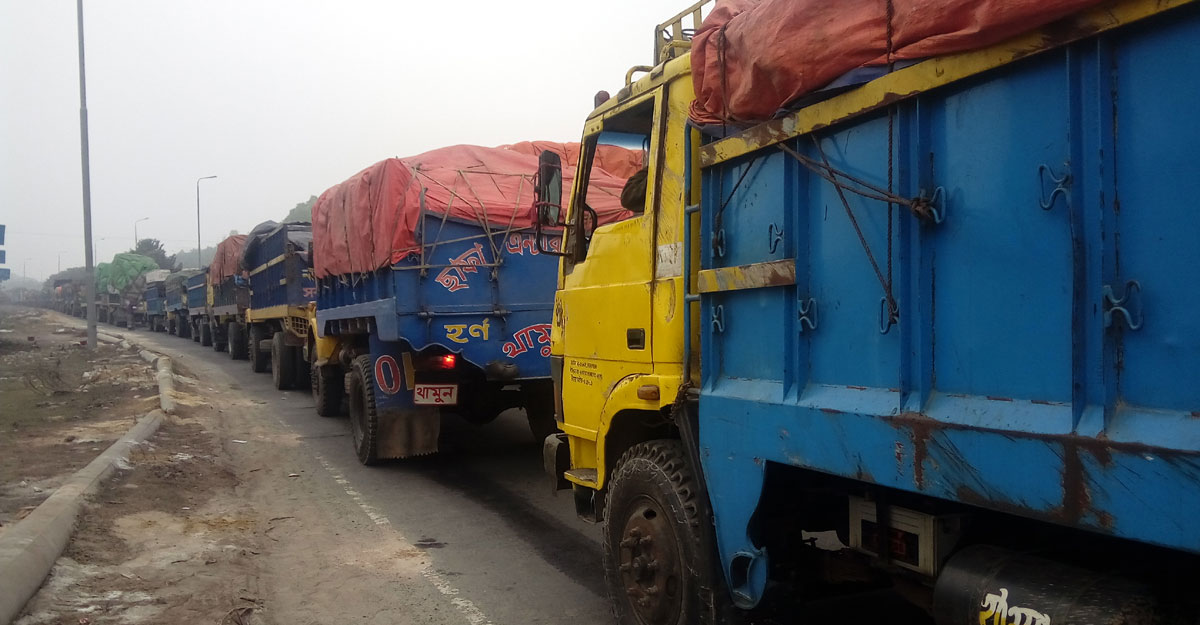 ট্রাকচালক নুরুল হুদা পণ্যবোঝাই করে ঢাকা থেকে রাজশাহীর উদ্দেশে রওনা হয়েছেন সোমবার রাতে। ঢাকা-টাঙ্গাইল মহাসড়কের এলেঙ্গা আসতেই পড়েন তীব্র যানজটে। মঙ্গলবার বেলা ১১টা বাজলেও বঙ্গবন্ধু সেতু পার হতে পারেননি তিনি। মহাসড়কের এলেঙ্গা থেকে বঙ্গবন্ধু সেতু আসতে ১১ কিলোমিটার সড়কে তার সময় লেগেছে ৬ ঘণ্টা।