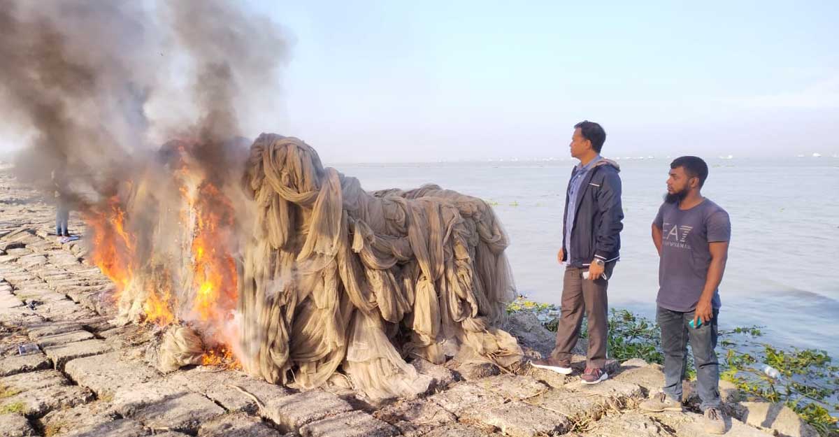 ১০ লাখ টাকার অবৈধ জাল পুড়িয়ে ধ্বংস