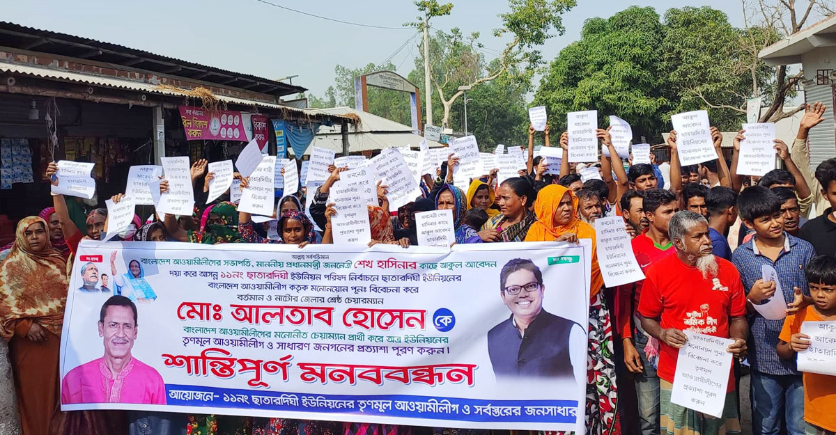 মাননীয় প্রধানমন্ত্রী ও আওয়ামী লীগ সভাপতি শেখ হাসিনার দৃষ্টি আকর্ষণ করে ছাতারদিঘী ইউনিয়নের দলীয় মনোনয়ন পুনর্বিবেচনা করে বর্তমান চেয়ারম্যান আলতাব হোসেন আকন্দকে দেওয়ার দাবি জানান তারা।