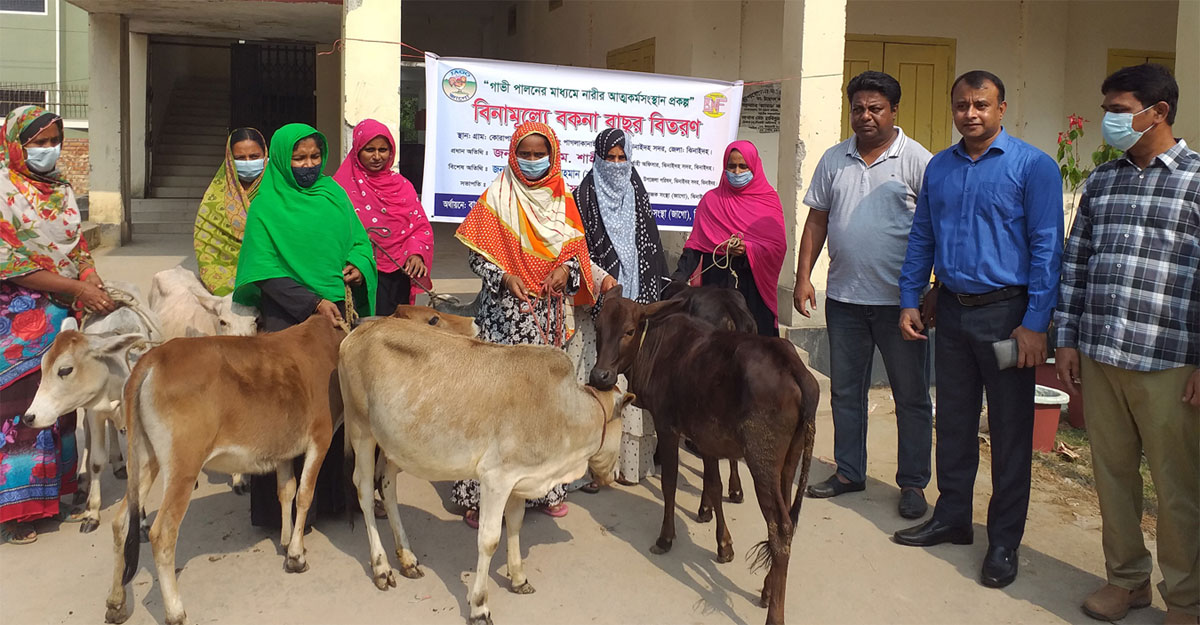 অনুষ্ঠানে সদর উপজেলার পাগলা কানাই ইউনিয়নের কোরাপাড়া গ্রামের ছালাম উদ্দীনের স্ত্রী বিউটি খাতুন, সুজ্জাল মন্ডলের স্ত্রী সেলিনা, তালাকপ্রাপ্ত রূপালী, শিল্পি খাতুন, শরিফের স্ত্রী ফাহিয়া খাতুন, ইউনুচের স্ত্রী শাহানাজ বেগম, শাহাবুদ্দিনের স্ত্রী তহমিনাসহ সাতজন দুস্থ নারীর মাঝে গরুর বকনা (মেয়ে) বাছুর বিতরণ করা হয়। এর আগে গাভি পালনের ওপর নারীদের এক দিনের প্রশিক্ষণ দেওয়া হয়।