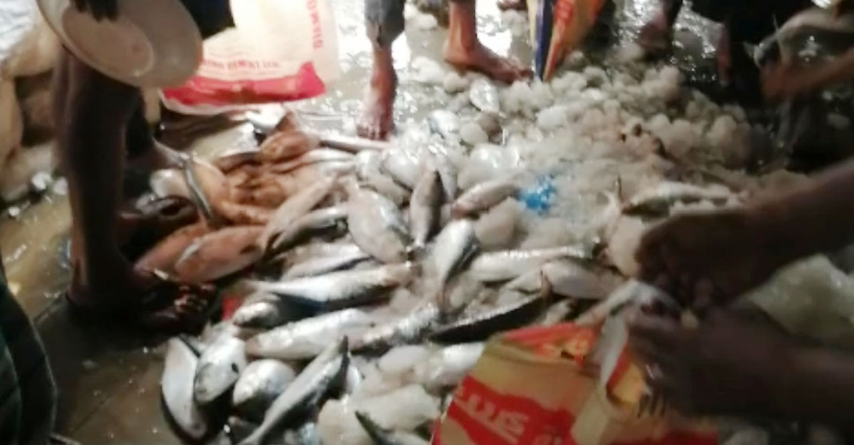বুধবার (২৪ নভেম্বর) বেলা ১১টার পর থেকে জব্দকৃত মাছ অসহায়দের মাঝে বিতরণ করা হয়। এ ঘটনায় পটুয়াখালী জেলার কলাপাড়ার বাসিন্দা হাসান সিকদার (২৮) ও গলাচিপা উপজেলার বাসিন্দা নান্নু মৃধাকে আটক করা হয়েছে।