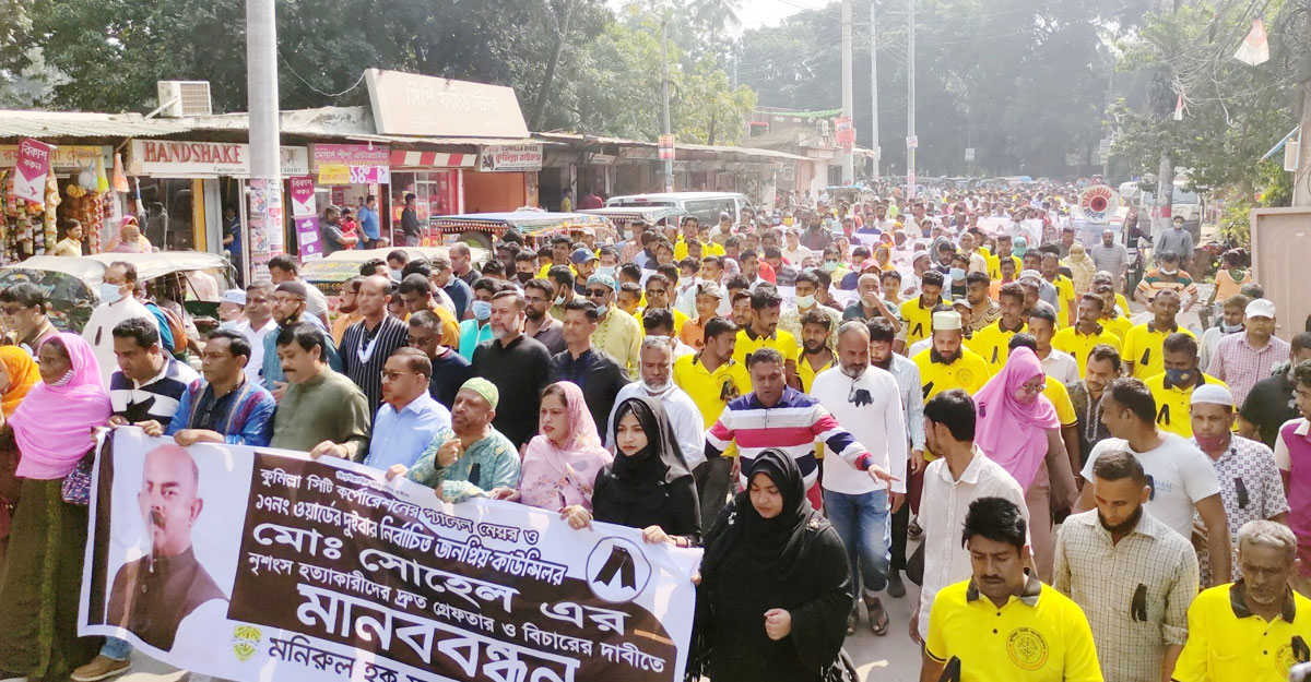 কুমিল্লা সিটি করপোরেশনের প্যানেল মেয়র ও ১৭ নম্বর ওয়ার্ডের দুইবারের নির্বাচিত কাউন্সিলর মো. সোহেল হত্যার বিচার দাবিতে রাজপথে নেমেছেন মেয়র ও কাউন্সিলরসহ সিটি করপোরেশনের কর্মকর্তা-কর্মচারীরা।