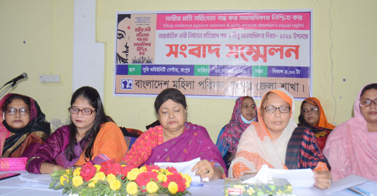 বৃহস্পতিবার (২৫ নভেম্বর) বিকেলে রংপুর নগরের একটি কমিউনিটি সেন্টারে আয়োজিত সংবাদ সম্মেলন থেকে উদ্বেগের এ কথা জানান বাংলাদেশ মহিলা পরিষদের রংপুর জেলা সভাপতি হাসনা চৌধুরী। আন্তর্জাতিক নারী নির্যাতন প্রতিরোধ পক্ষ ও বিশ্ব মানবাধিকার দিবস উদযাপন উপলক্ষে এ সংবাদ সম্মেলনের আয়োজন করা হয়।