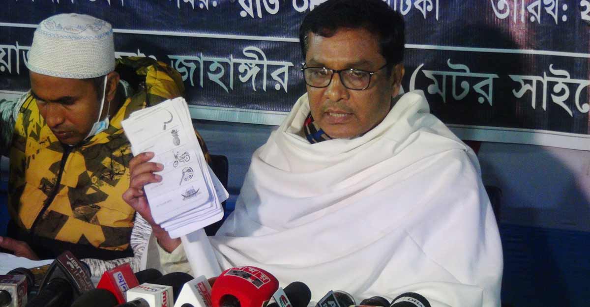 নৌকার সিল মারা ২০টি ব্যালট পেপার নিয়ে বিএনপি নেতার সংবাদ সম্মেলন