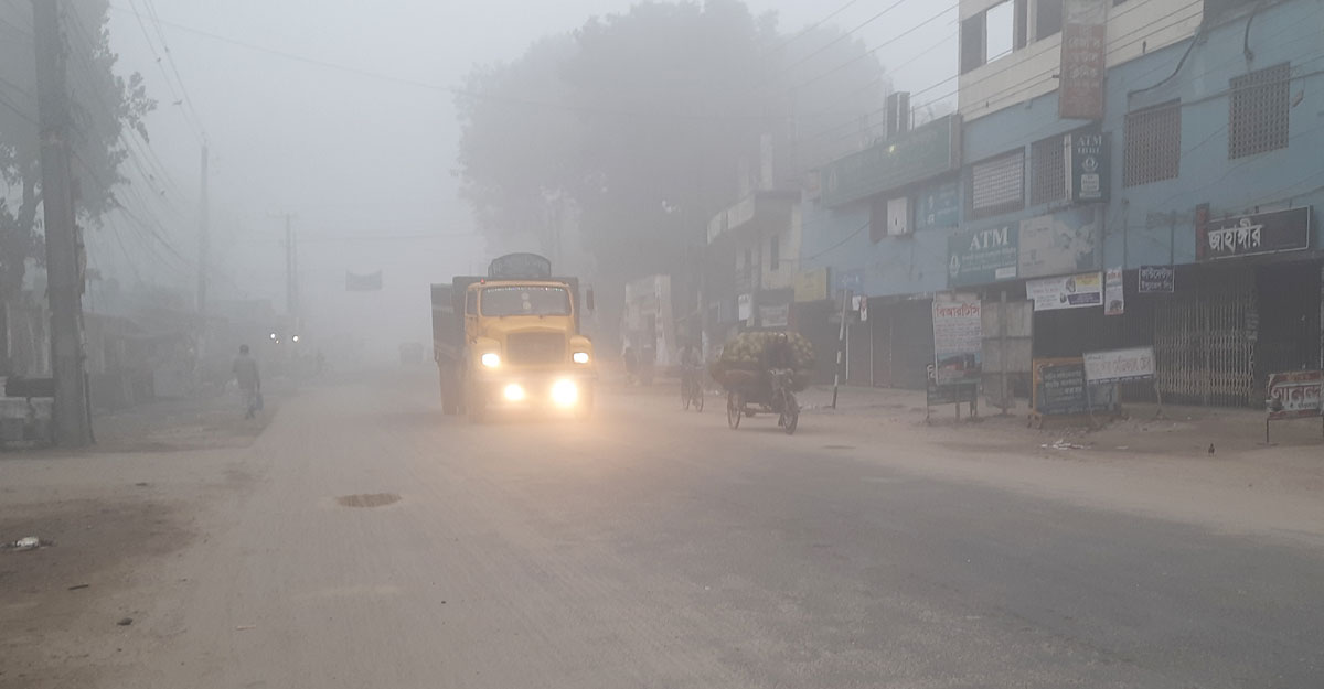 ঘন কুয়াশায় ঢাকা পড়েছে চারদিক