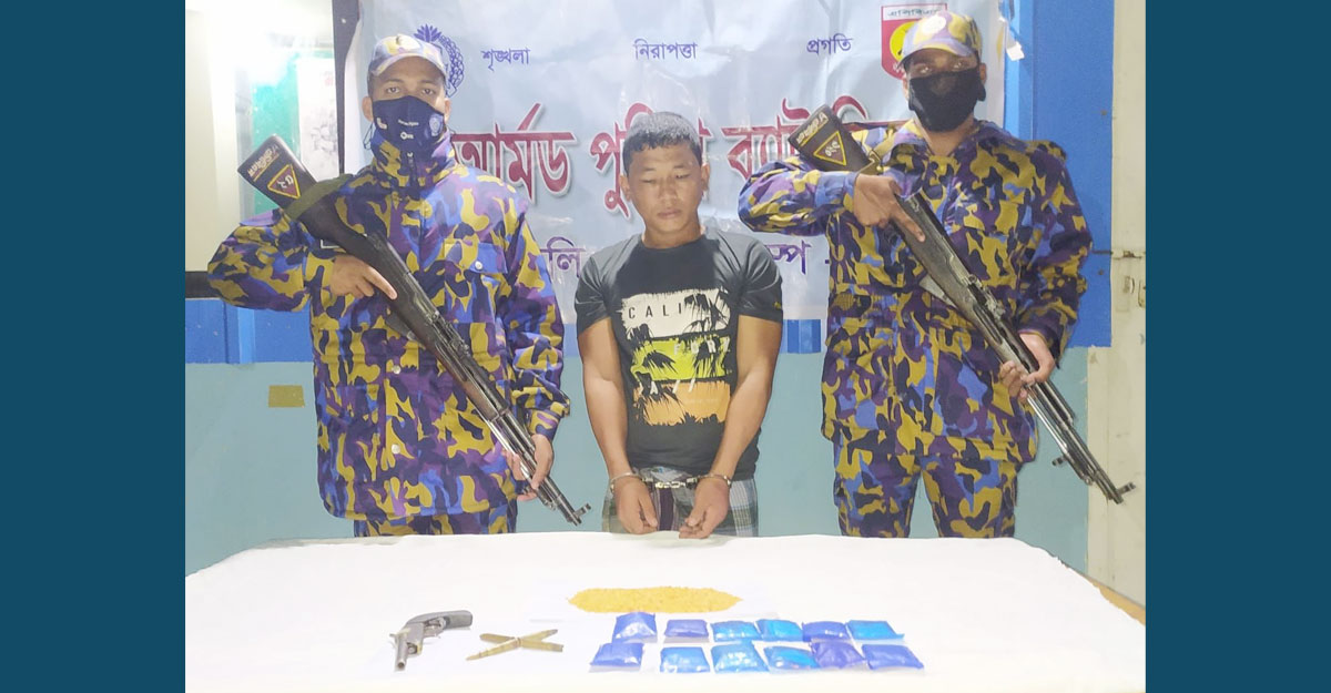আটক রবিন টেকনাফ উপজেলার হোয়াইক্যং ইউনিয়নের হরিণখোলা এলাকার ক্যাচচিং চাকমার ছেলে।