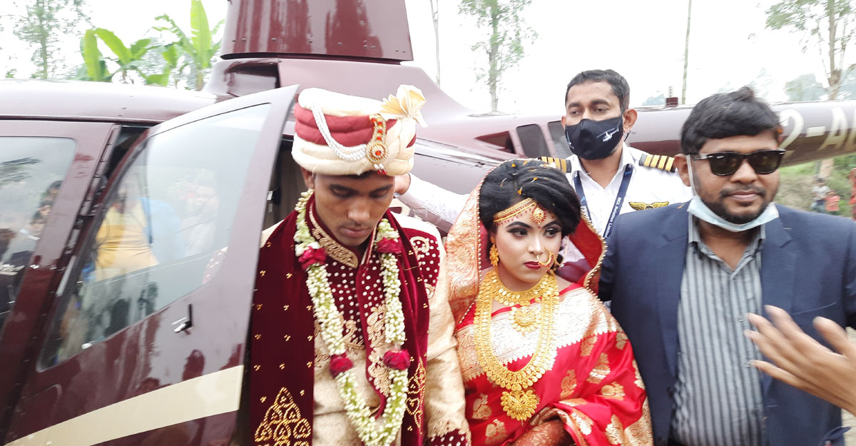 হেলিকপ্টারে বউ আনলেন কৃষক রাসেল