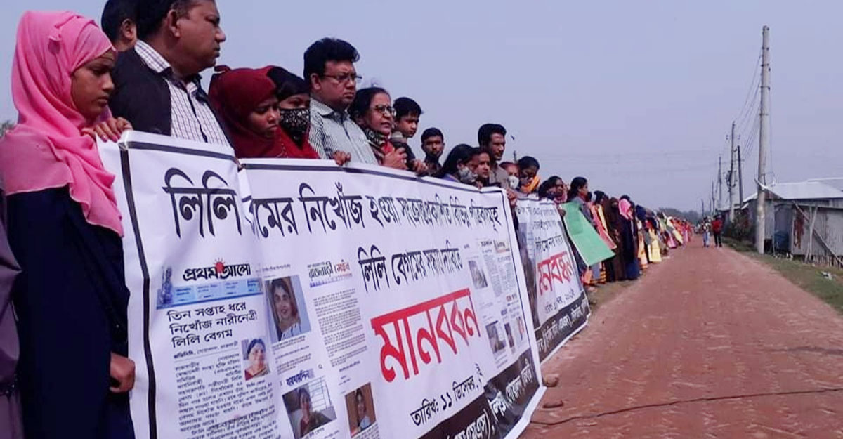 রাজবাড়ীর গোয়ালন্দ উপজেলার দৌলতদিয়া যৌনপল্লির বাসিন্দা নারীনেত্রী মুক্তি মহিলা সমিতির সহসভাপতি ও যৌনকর্মী লিলি বেগমের (৩৮) সন্ধানের দাবিতে মানববন্ধন অনুষ্ঠিত হয়েছে। তিনি এক মাস ধরে নিখোঁজ রয়েছেন।