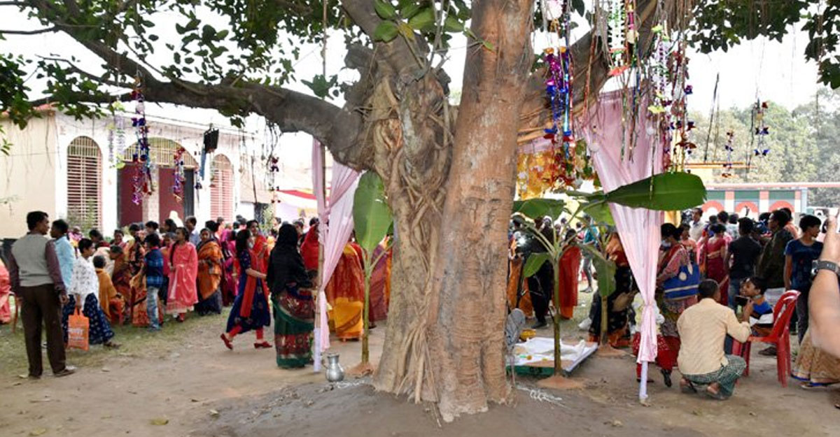 তবে শনিবারের (১১ ডিসেম্বর) আয়োজিত এই বিয়ে আর সব বিয়ের মতো নয়। বর ও করে পাশাপাশি দাঁড়িয়ে থাকা বট ও পাকুড় গাছ। ১৭ বছর আগে গাছ দুটি লাগানো হয়েছিল মন্দির চত্বরে।