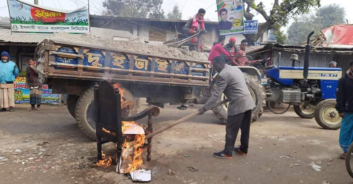ভাতার অনিয়মে চেয়ারম্যানের চেয়ার পোড়ালেন সদস্য