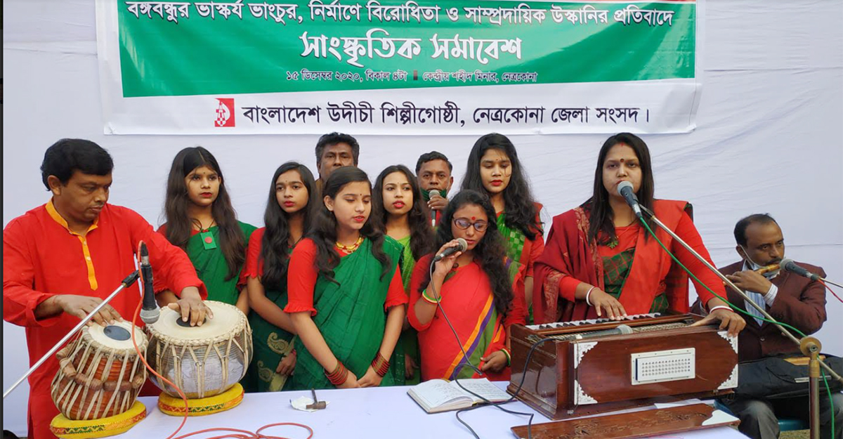 গান-কবিতা ও বক্তৃতার মাধ্যমে জাতির পিতা বঙ্গবন্ধু শেখ মুজিবুর রহমানের ভাস্কর্য ভাংচুরের প্রতিবাদ জানিয়েছেন নেত্রকোনার সংস্কৃতিকর্মীরা।