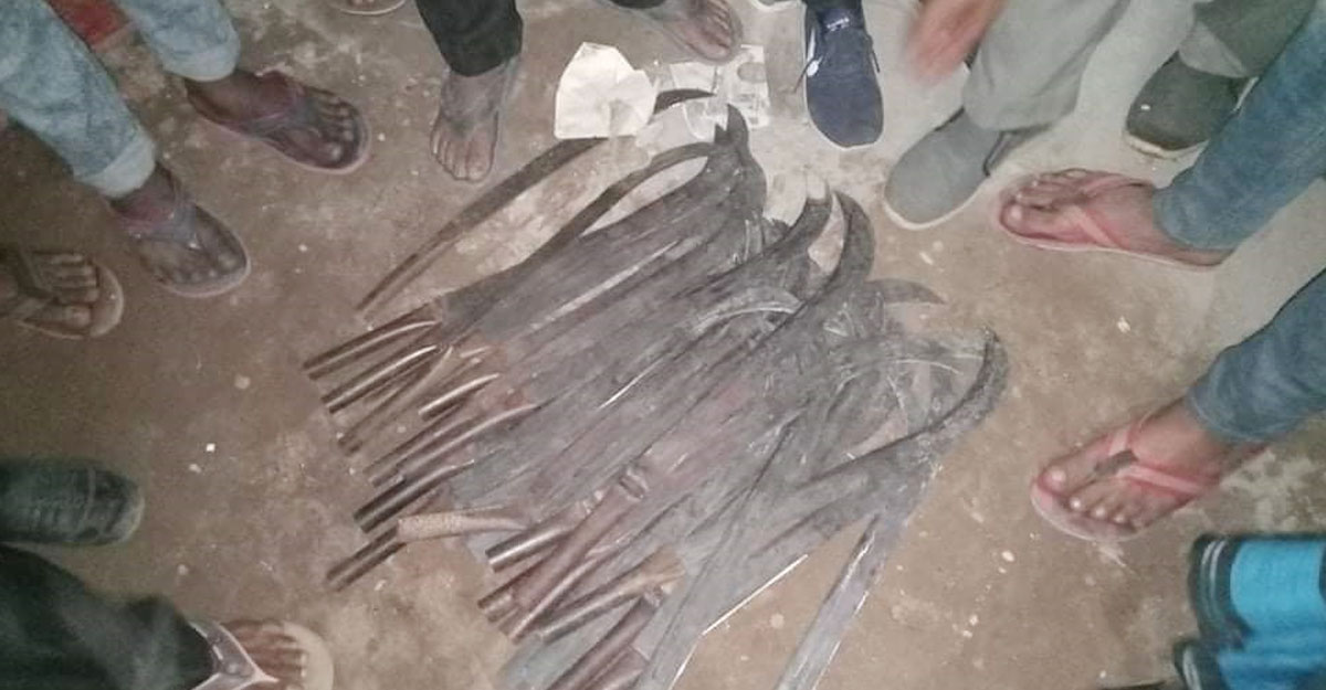 দোকানের সামনে থেকে ৪০ রামদা উদ্ধার, আতঙ্কে এলাকাবাসী
