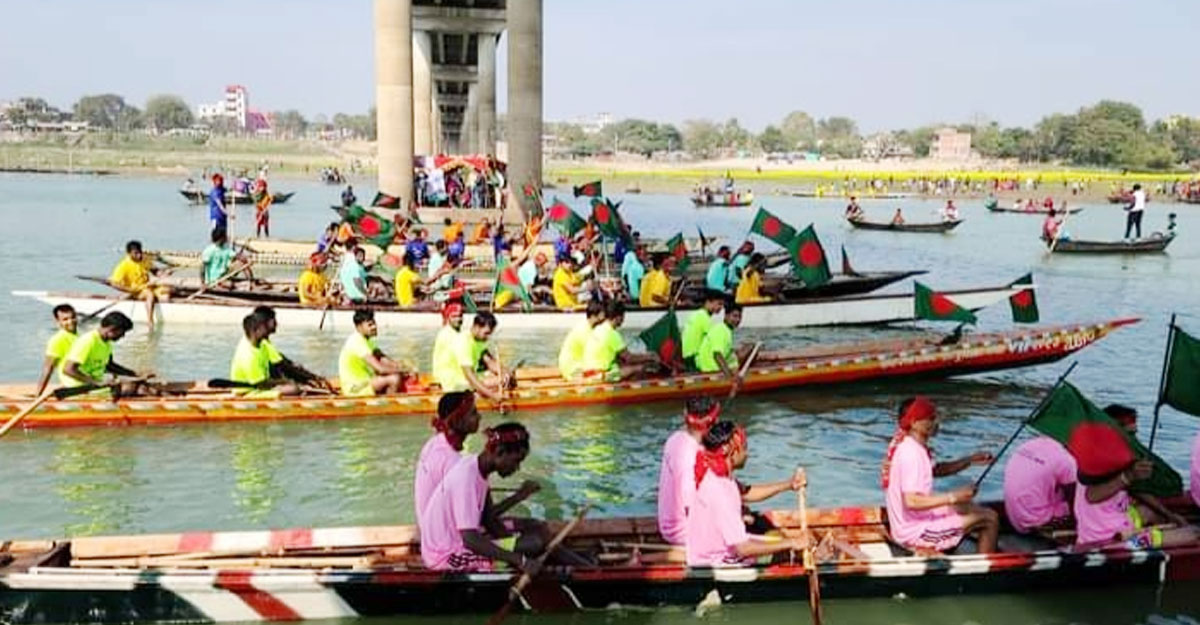 বিজয়ের আনন্দে মহানন্দায় নৌকা বাইচ প্রতিযোগিতা
