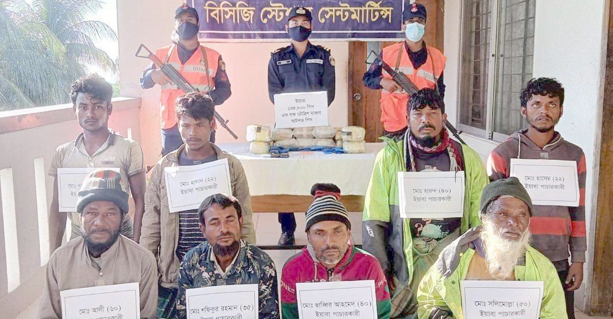 সেন্টমার্টিন থেকে ১ লাখ ৩৫ হাজার পিস ইয়াবাসহ আটক ৮