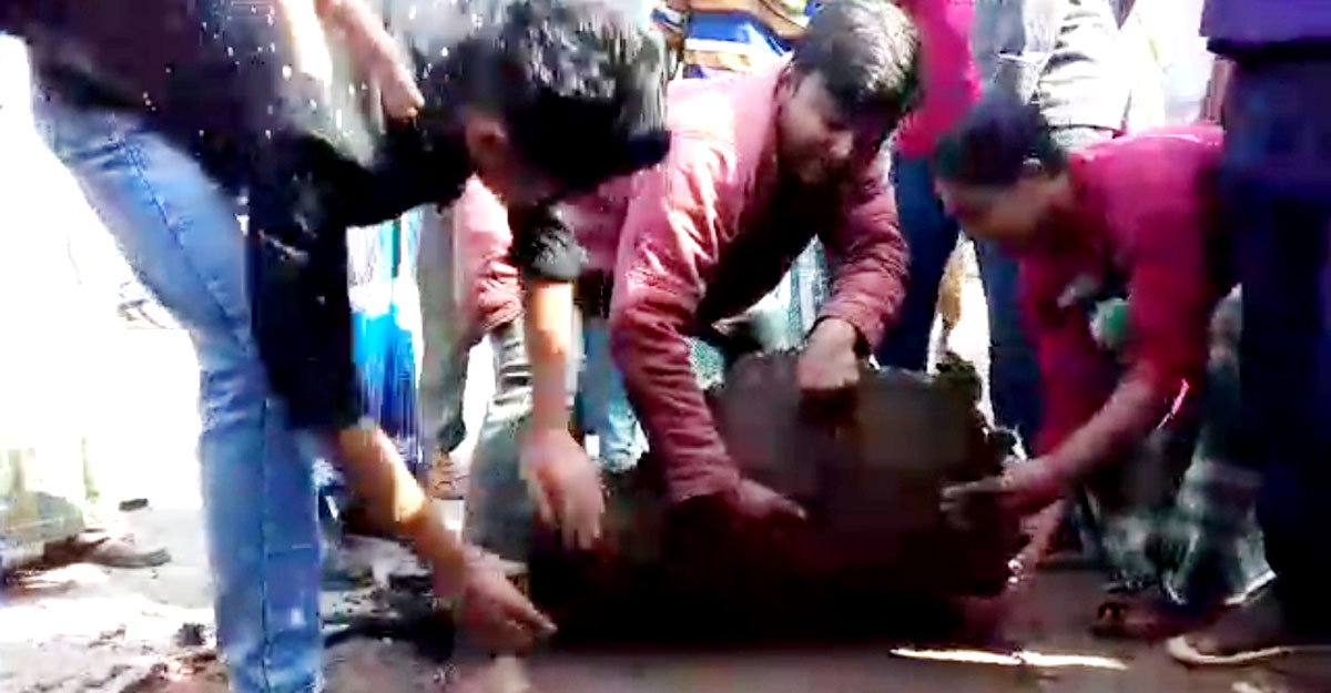 হাতের টানেই উঠে যাচ্ছে নির্মাণাধীন সড়কের পিচ