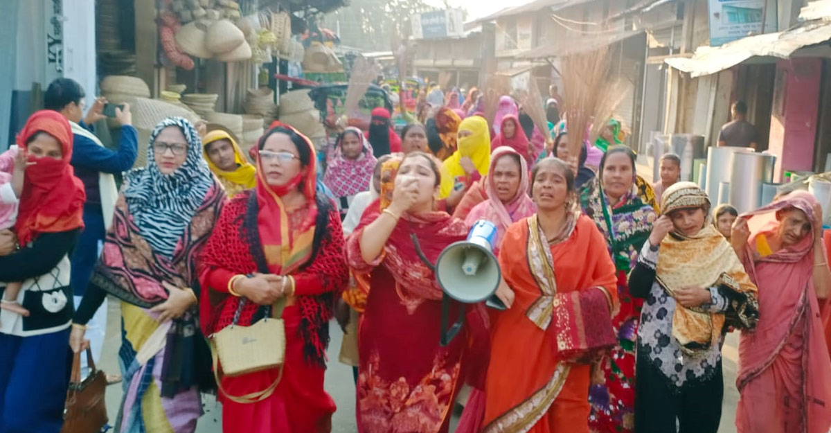 উপজেলা চেয়ারম্যানের বিরুদ্ধে মহিলা আ.লীগের ঝাড়ু মিছিল
