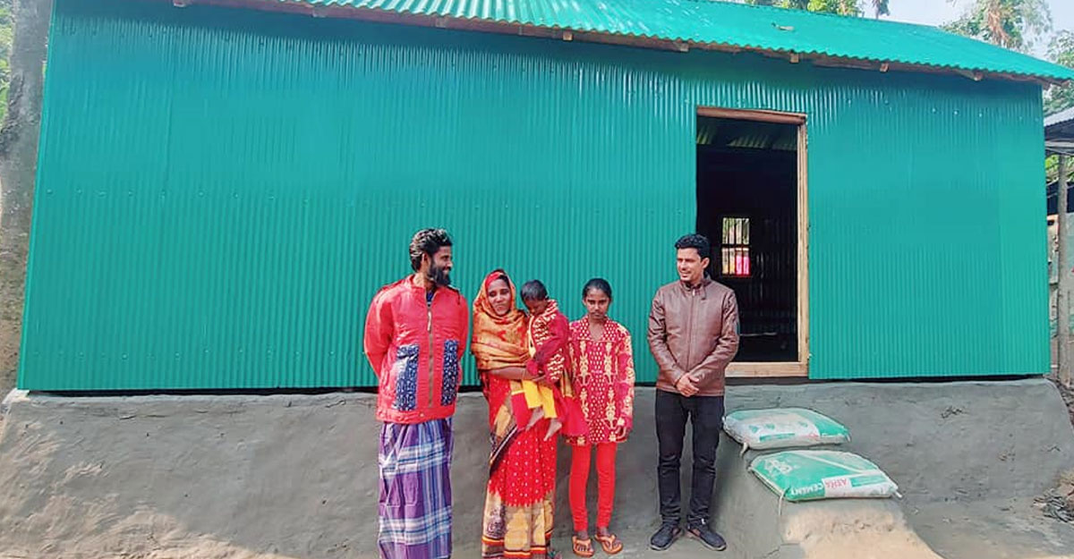 ময়মনসিংহের ফুলবাড়িয়ার কুশমাইল ইউনিয়নের চররাধাকানাই গ্রামে পাখির বাসার মতো একটি খুপরি ঘরে পরিবার নিয়ে থাকতেন রেশমা বেগম। স্যাঁতসেঁতে মাটির ঘরের চাল ও চারপাশটা ছিল পলিথিন দিয়ে ঘেরা। একটু বাতাসেই নড়াচড়া করতো চটের বেড়াটি। এমন ঘরেই গত ১৪ বছর ধরে বসবাস করে আসছিলেন। অবশেষে কষ্টের দিন ফুরাল রেশমার, পেয়েছেন স্বপ্নের টিনশেড রঙিন ঘর। শুধু তাই নয়, টিউবওয়েল, বাথরুম, নতুন জামা-কাপড় সবই পেয়েছে পরিবারটি।