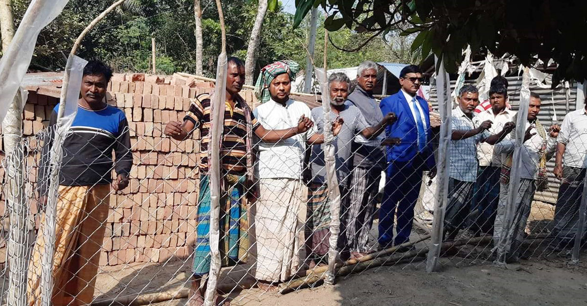 ভুক্তভোগীদের অভিযোগ, নিজের জায়গা অন্য কাউকে ব্যবহার করতে না দেওয়ার অজুহাতে এই বেড়া দিয়েছেন তাহের মন্ডল ও তার ছেলে লালান মন্ডল।