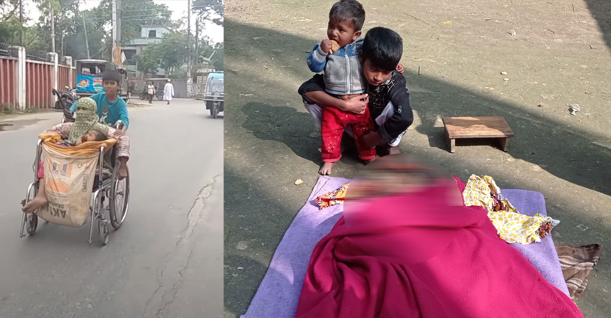 আট বছরের আব্দুর রহমান ছিল পঙ্গু মা-বাবার একমাত্র ভরসাস্থল। মা আম্বিয়া খাতুনকে হুইল চেয়ারে করে বেড়াত সে। তবে আর হুইল চেয়ার ঠেলতে হবে না তাকে। সোমবার (২০ ডিসেম্বর) সকালে চুয়াডাঙ্গা পৌর এলাকার ফার্মপাড়ার ভাড়া বাড়িতে পৃথিবীর মায়া ত্যাগ করে চলে যান মা। মাকে হারিয়ে মাথায় যেন আকাশ ভেঙে পড়েছে অবুঝ দুই শিশুর। আড়াই বছরের আব্দুল্লাহকে কোলে নিয়ে রহমানের গগণবিদারী কান্নায় চোখের পানি ধরে রাখতে পারেননি উপস্থিত জনতা।