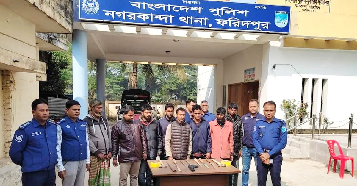 নগরকান্দায় ডাকাতির প্রস্তুতিকালে অস্ত্রসহ গ্রেফতার ৮