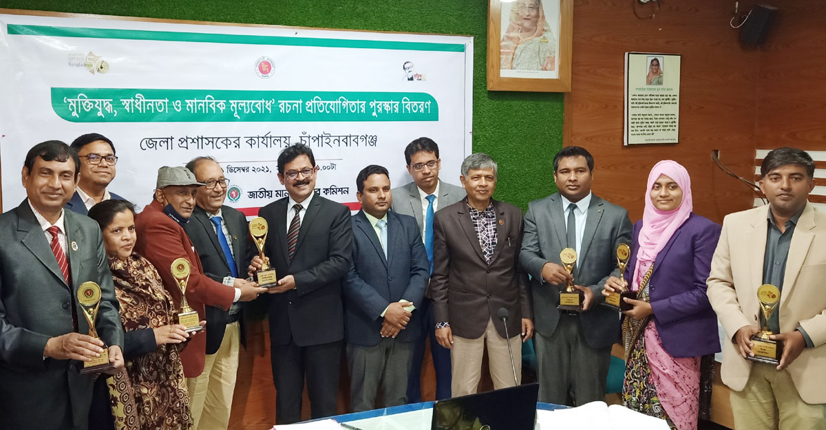 ‘মুক্তিযুদ্ধ, স্বাধীনতা ও মানবিক মূল্যবোধ’ শিরোনামে দেশব্যাপী রচনা প্রতিযোগিতার আয়োজন করে জাতীয় মানবাধিকার কমিশন। দুইটি গ্রুপে সারাদেশ থেকে বাছাইকৃত ১ লাখ ৫১ হাজার ৫১৬ জন শিক্ষার্থী প্রতিযোগিতায় অংশগ্রহণ করে। এর মধ্যে শুধু চাঁপাইনবাবগঞ্জ জেলা থেকেই অংশ নেয় ৪৯ হাজার ৩৮৩ জন। সর্বোচ্চ প্রতিযোগী অংশ নেওয়ায় শ্রেষ্ঠ জেলার পুরস্কার পেয়েছে চাঁপাইনবাবগঞ্জ।