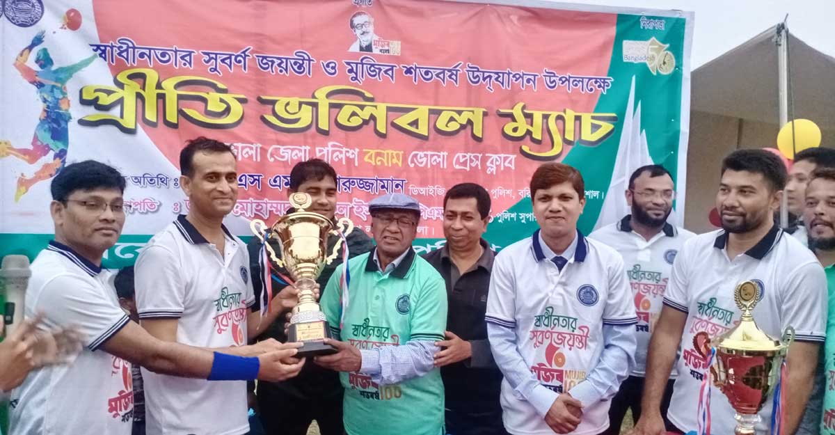 স্বাধীনতার সুবর্ণজয়ন্তী ও মুজিবশতবর্ষ উপলক্ষে ভোলায় জেলা পুলিশের আয়োজনে প্রীতি ভলিবল ম্যাচ অনুষ্ঠিত হয়েছে।