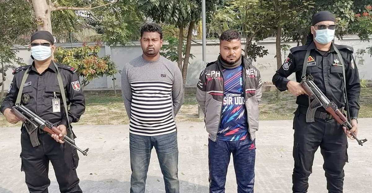 গ্রেফতাররা হলেন- যশোর বেনাপোল পুটখালী এলাকার মো. আব্দুল মমিনের ছেলে মো. আজিজুর রহমান ও একই এলাকার মো. আ. কাদেরের ছেলে মো. আব্দুল্লাহ।