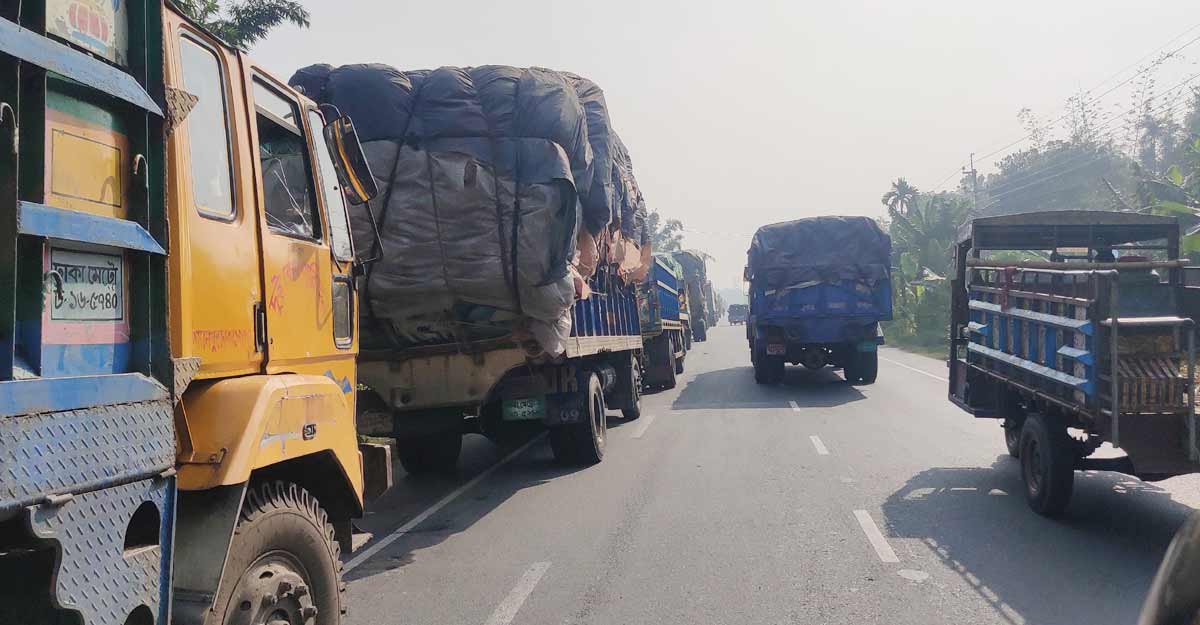 দৌলতদিয়ায় ট্রাকের দীর্ঘ সারি