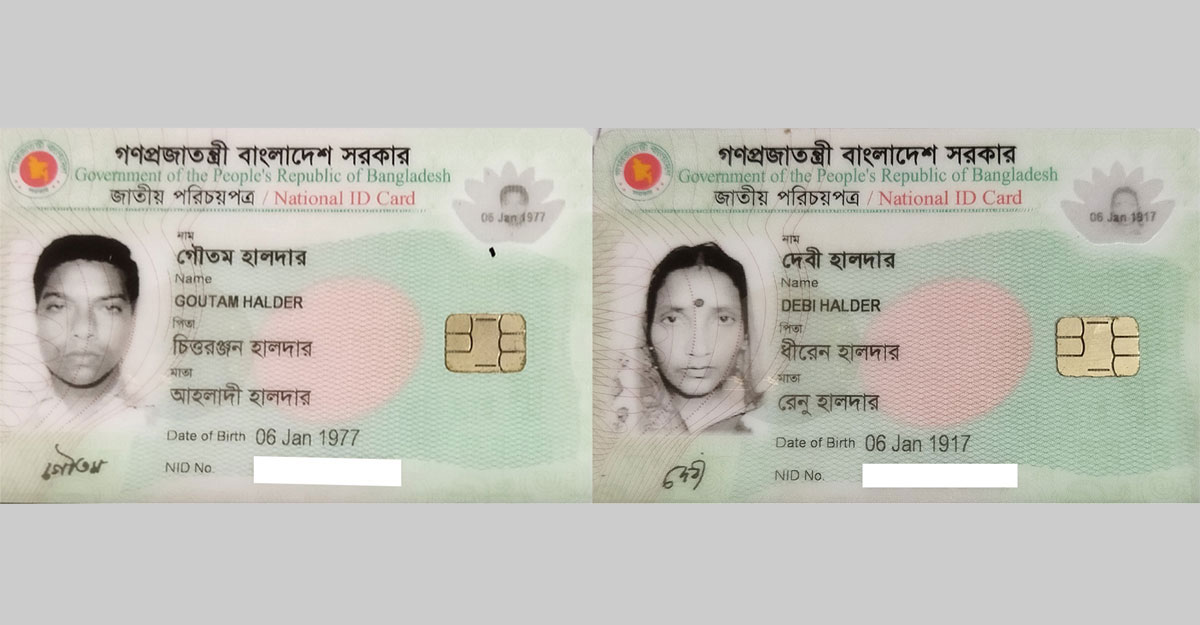 পিরোজপুরের নাজিরপুর উপজেলায় জাতীয় পরিচয়পত্র অনুযায়ী স্বামী গৌতম হালদারের বয়স ৪৪ বছর আর স্ত্রী দেবী হালদারের বয়স ১০৪ বছর ১১ মাস ১৭ দিন। তার মানে স্বামীর থেকে স্ত্রী ৬০ বছরের বড়। এ ঘটনায় ওই দম্পতি বয়সের পার্থক্য নিয়ে ভোগান্তির মধ্যে রয়েছেন।