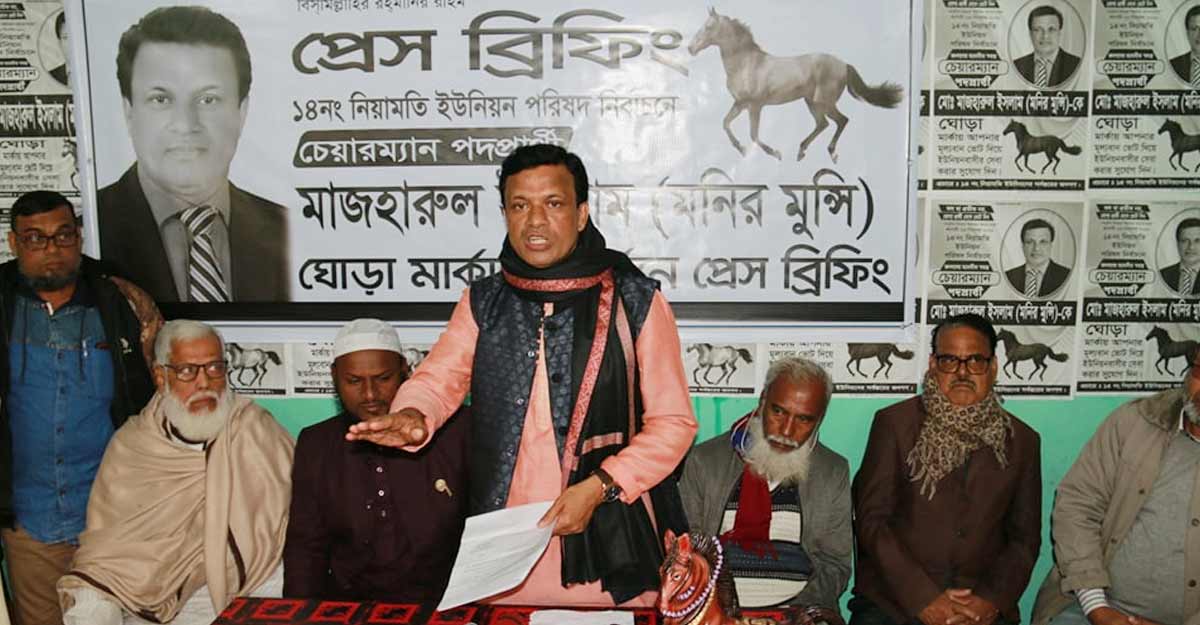 ‘বিদ্রোহী’ প্রার্থী ঘোড়া প্রতীকের মাজহারুল ইসলাম মনির মুন্সির সংবাদ সম্মেলন