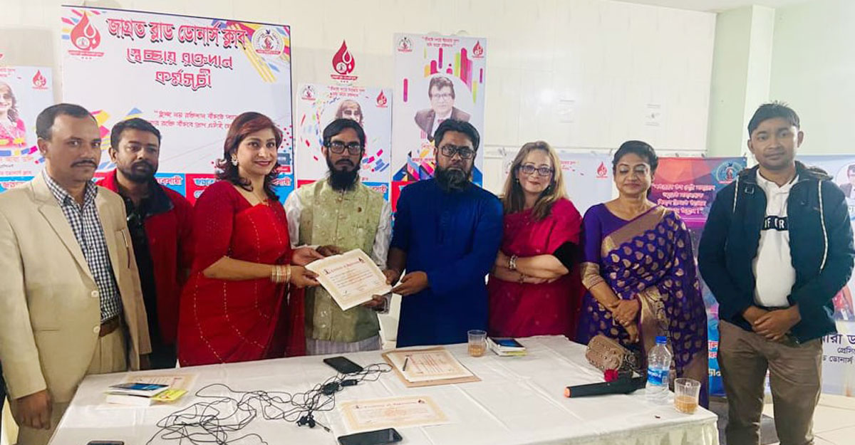 অনুষ্ঠান শেষে স্বেচ্ছায় রক্তদাতাদের মাঝে জাগ্রত ব্লাড ডোনার্স ক্লাবের পক্ষ থেকে বিশেষ সনদপত্র বিতরণ করা হয়।