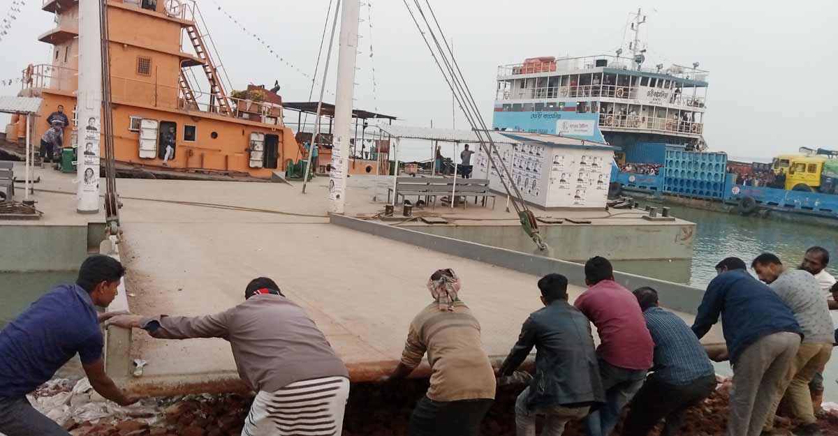 এদিকে বিকল্প কোনো পন্টুন না থাকায় ঘাটে ভিড়তে না পেরে আরিচা থেকে যানবাহন নিয়ে আসা একটি ফেরি নদীতে নোঙর করে আছে। এর ফলে এই ফেরিঘাটে পারাপারের জন্য আসা যানবাহনের শ্রমিক ও যাত্রীদের চরম দুর্ভোগ পোহাতে হচ্ছে।