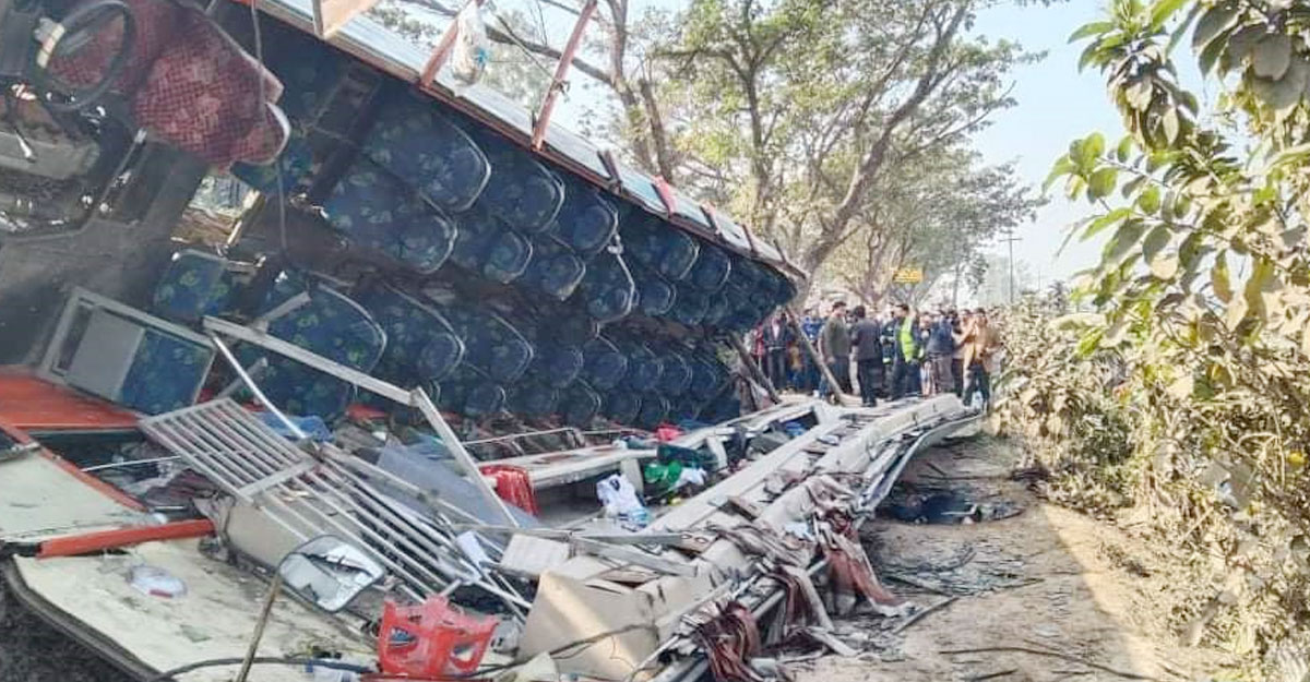এ সময় যাত্রীবাহী বাসটি মহাসড়ক থেকে পাশের রাস্তায় ছিটকে পড়ে একটি অটোভ্যানকে চাপা দেয়। এতে ঘটনাস্থলেই অটোভ্যানে থাকা এক নারীসহ চারজন মারা যায়। আহত হয় অন্তত আরও ১০ জন।
