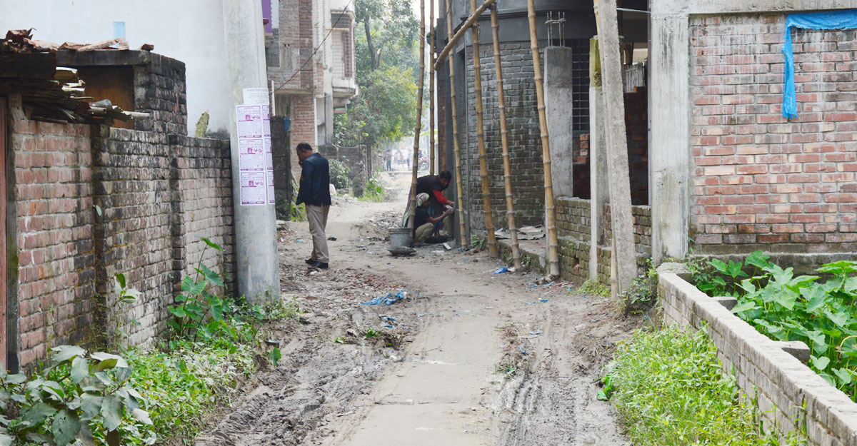 রাস্তার ওপর প্রকৌশলীর বাড়ি, প্রকল্পের কাজ বন্ধ