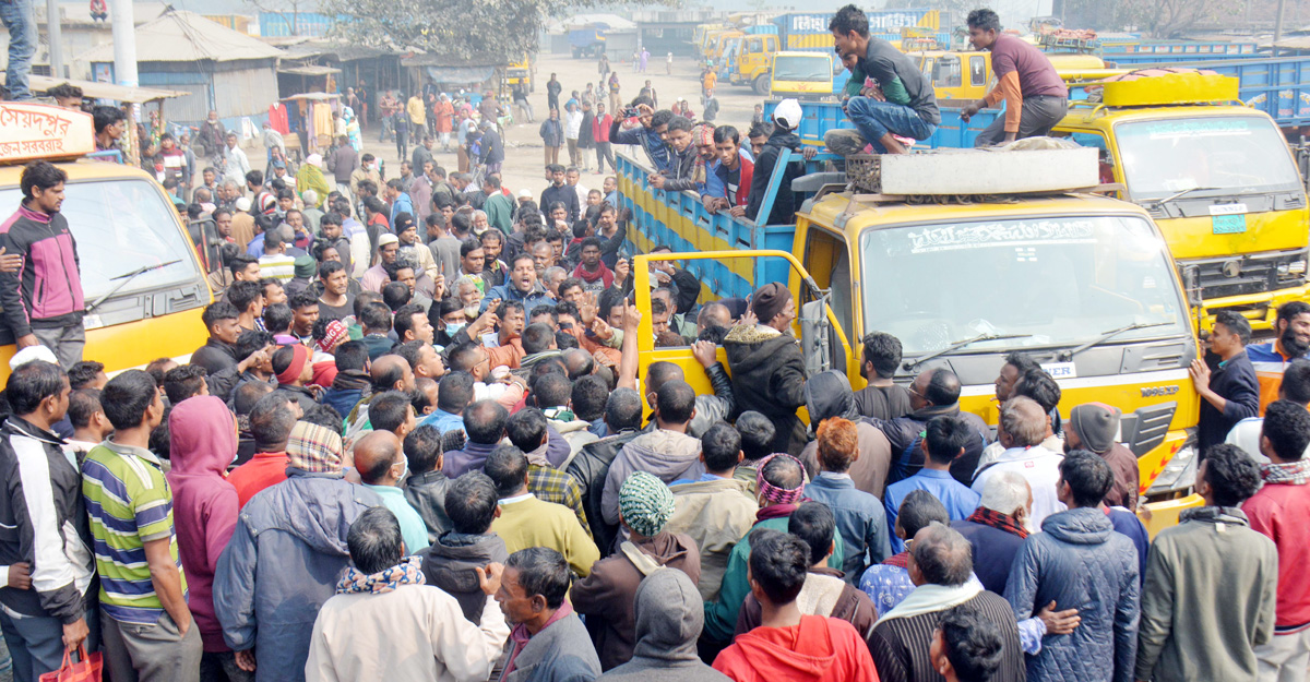 রংপুর নগরের পশ্চিম বাবুখাঁ ট্রাক টার্মিনাল সংলগ্ন আরকে রোড মহাসড়কে অবস্থান নিয়ে বিক্ষোভ করেন বিক্ষুব্ধ শ্রমিকেরা