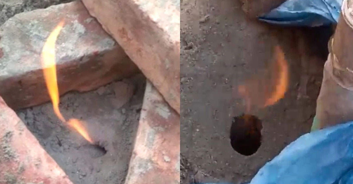 টিউবওয়েলের পাশ থেকে উঠছে গ্যাস, জ্বলছে আগুন