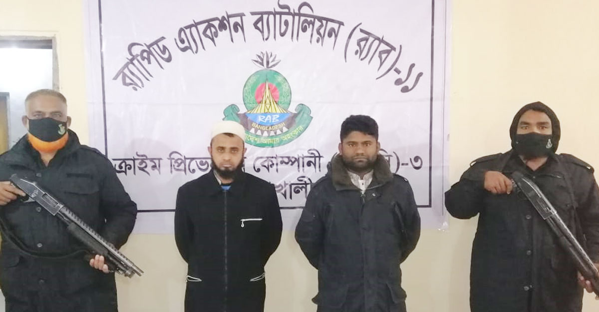 গ্রেফতাররা হলেন- নোয়াখালী সদর উপজেলার পূর্ব এহজবালিয়া গ্রামের আব্দুল মতিনের বাড়ির আব্বাস উদ্দিনের স্ত্রী মাহমুদ আক্তার আখি ওরফে সুমাইয়া আক্তার বিথী ওরফে সাবিনা (২৬) একই উপজেলার নোয়াখালী শল্লা ঘাটাইয়া বাচ্চু মিয়ার মৃত নুরুল হকের মো. আরিফুল ইসলাম (৩০) একই ইউনিয়নের মধ্যম চর উরিয়া গ্রামের ইস্কান্দার মিয়া বাড়ির আবুল কালামের ছেলে মোবারক হোসেন ওরফে সোহেল (২৭)।