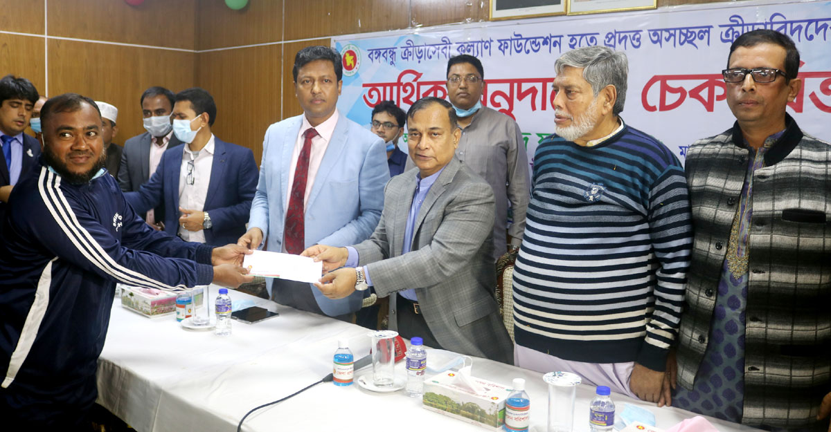 এ সময় ২৪ জন অসচ্ছল ক্রীড়াবিদদের মাঝে ২৪ হাজার টাকা করে ৫ লাখ ৭৬ হাজার টাকার আর্থিক অনুদানের চেক বিতরণ করা হয়।