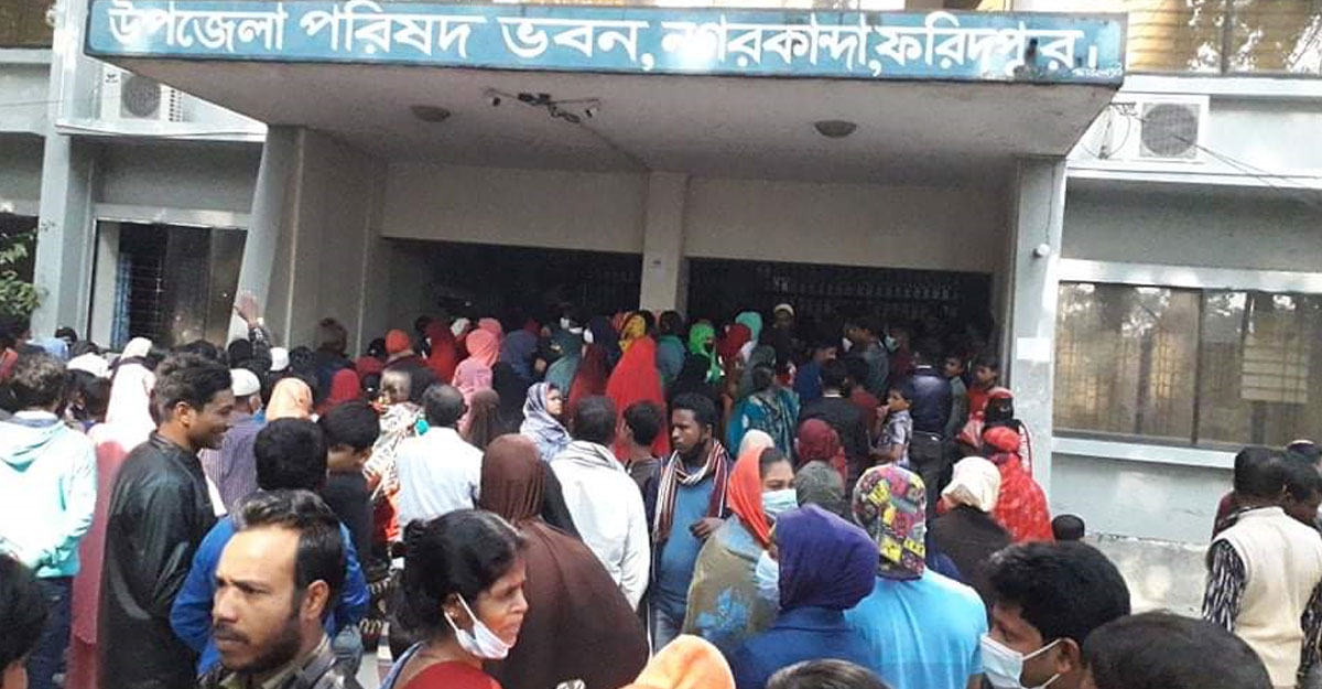 ফরিদপুরের নগরকান্দা উপজেলা পরিষদ ভবনের সামনে করোনার টিকা নেওয়ার জন্য শিক্ষার্থীদের ভিড় লক্ষ্য করা গেছে। রোববার (০৯ জানুয়ারি) উপজেলায় শিক্ষার্থীদের ফাইজারের টিকা দেওয়া হচ্ছে।