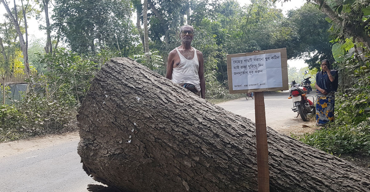 স্থানীয় বাসিন্দা সুশীল বিশ্বাস বলেন, বৃহৎ এই শিশুগাছটি ঝড়ের রাতে উপড়ে পড়ে। যোগাযোগ ব্যবস্থা বিচ্ছিন্ন হয়ে যায়। এরপর সড়কের ওপারে পানের বরজের মালিক গাছটির কিছু অংশ কেটে ফেলে তার পানের বরজটি রক্ষা করেন। পরবর্তীতে সরকারের লোকজন এসে গাছের কাটা অংশগুলো নিয়ে যান। তারপর থেকেই গাছের গুঁড়িটি পড়ে রয়েছে। এতে মানুষদের খুব সমস্যা হচ্ছে।