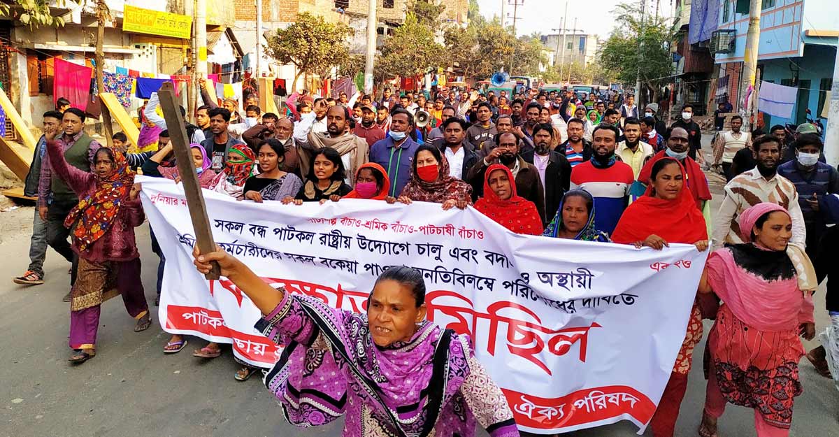 খুলনায় পাটকল চালুর দাবিতে বিক্ষোভ